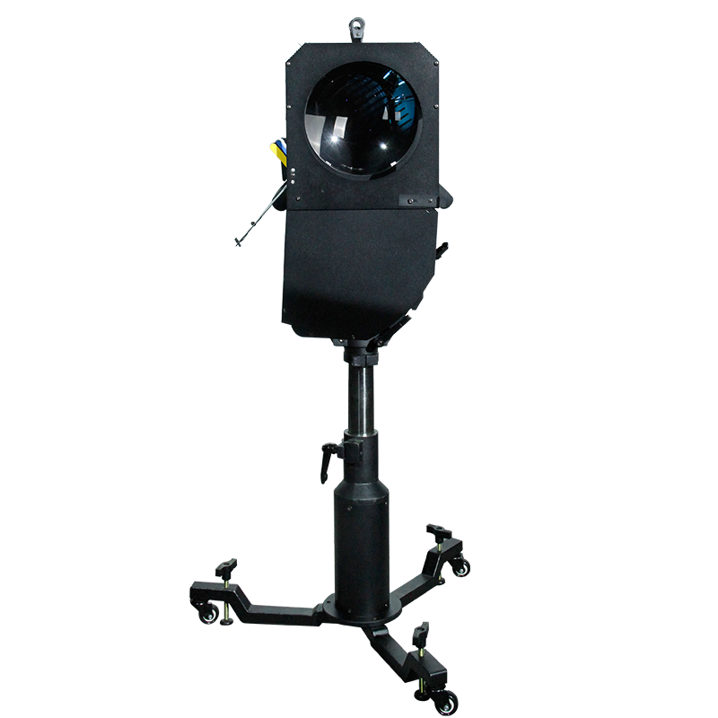 The ProFollow 600LED is a professional high output long throw follow spot featuring the included 600W 6500K LED lamp, 50000 hours average lamp life, 42000 total lumens, 9000LUX@15m (4°) and high CRI(Ra≧85). The functions include 4°-8°manual zoom, 5 dichroic colors plus white, 0-100% linear LED dimming, frost filter, gobo holder, manual focus and IRIS. The fixture will come with a pro stand with 60° manually adjusting angle. The optimum throw range is 15m-35m.