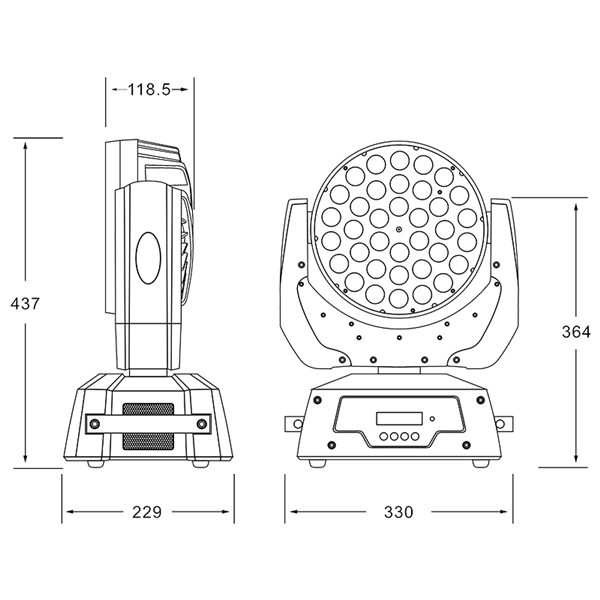 The LEDWASH 360F is offered with specific optic system (35 degree). It's with amazing color mixing. And it’s with fast and quiet moving. The 36PCS CREE XLamp XML 10W LEDs (4-IN-1) are made into 6 sections and each section could be controlled individully. SI-055 is built in with a VIRTUAL color wheel containing different color adjustment including color temperature. It features 3 DMX channel modes, 12/38/38CH which provides wide range of free programming capability for professional lighting designers who need to realize what they have in mind.